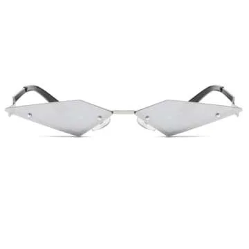 JOVAKIT Rimless Lozenge Sunglasses for Women Men Fashion Polygon Sun Glasses Metal Frame Rave Party Halloween Eyeglasses (Silver Mirror)