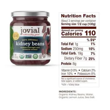 Show moreExperience the authentic taste of Italy with Jovial 100% Organic Kidney Beans. Sourced from the lush, sun-kissed fields of the Piemonte region, these beans undergo a careful traditional process that enhances their flavor and nutritional value. Soaked overnight and cooked to perfection with a hint of Sicilian sea salt, they offer a delightful taste that is versatile enough for any recipe. Each jar contains nothing but natural ingredients, ensuring you enjoy the great taste of beans without preservatives, additives, or unhealthy fats.