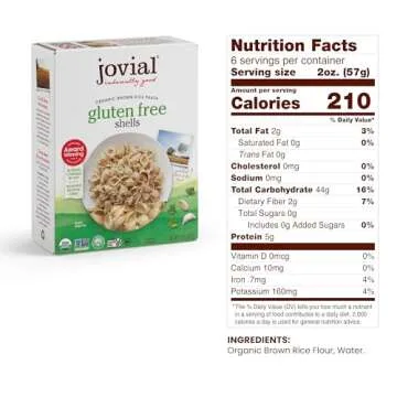 Jovial Whole Grain Brown Rice Shells Pasta - Pasta Shells, Shell Pasta, Whole Grain Pasta, Organic Pasta, Gluten Free, Dairy Free, Cooks Firm, Award Winning Taste, Made in Italy - 12 Oz