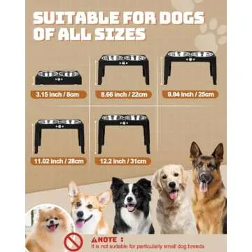 Show more If you're looking to elevate your dog's dining experience, look no further than the revolutionary Dog Feeding Station. Crafted with care, this feeding stand ensures your furry friend enjoys their meals without the discomfort of bending down. The unique ergonomic design promotes better digestion and alleviates strain on your dog's neck and back. Beyond just practicality, it's about making every meal enjoyable! The stand is customizable with five adjustable heights (12 inches, 10&11 inches, 9 inches, and 3.1 inches), allowing it to grow with your pet from the kitten or pup stage to their senior years.