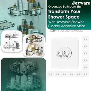 Show moreIntroducing the Jovware Adhesive for Shower Caddy—your ultimate solution to transform cluttered spaces into organized sanctuaries! This product is designed for maximum performance in high-moisture areas like bathrooms or kitchens. With the ability to hold a staggering 40lbs, you can confidently hang all your essentials without worrying about weight limits or mess. The sleek elegance of this adhesive not only enhances your bathroom but also adds a touch of modernity to your kitchen sink area, perfectly blending practicality and aesthetics.
