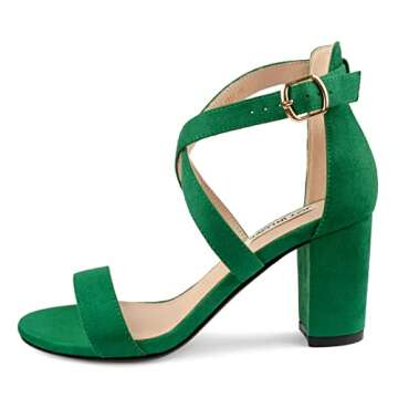 JOY IN LOVE Women's Chunky Block Heels 3 Inch Ankle Strap Low Heel Sandals Green Suede 7US