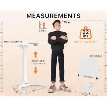 JOY Worker Foldable Mobile Standing Desk, Height-Adjustable Sit-Stand with 90 Tiltable Top, Portable with Wheels, Non-Slip Mat for Home Office, Holds Up to 22lbs, White