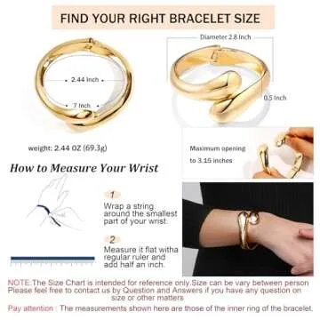 Show moreDiscover the exquisite Joya Love Chunky Gold Cuff Bangle Bracelet, a true embodiment of luxury and modern elegance. Designed with meticulous attention to detail, this statement bracelet features a chic nail-shaped design adorned with an eye-catching pearl head. Perfectly crafted to enhance any outfit, it adds a touch of sophistication whether you are dressing up for a special occasion or seeking to elevate your everyday attire. With its easy opening and closing hinge, the bangle accommodates various wrist sizes comfortably with an inner diameter of 2.36 inches and a width of 0.51 inches, ensuring a snug yet stylish fit for all users.