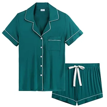 Show moreIntroducing the Joyaria Women’s Button Down Pajama Sets – an ideal selection for brides seeking the ultimate in comfort and style during those warm summer nights. Made from 95% premium viscose derived from bamboo, complemented by 5% spandex, these pajamas provide an effortlessly soft and breathable experience, distinctly cooler than traditional cotton. The delicate fabric hugs your silhouette just right while ensuring maximum breathability, making them perfect for those experiencing hot flashes or night sweats.
