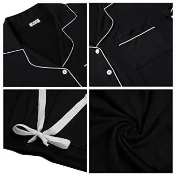Show moreExperience ultimate comfort and style with our luxurious women's button-up pajama set, crafted from 95% viscose (from bamboo) and 5% spandex. This exquisite blend makes the fabric cooler and softer than traditional cotton, allowing you to slip into a cozy embrace every night. Designed for those who value both functionality and elegance, these pajamas feature a short-sleeve top with a classic notch collar and a stylish button-down front with a handy pocket.