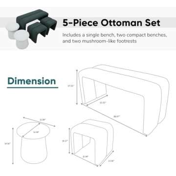 JOYBASE 5-Piece Ottoman Bench Footrest Set Modern Upholstered Ottoman Bench for Living Room, Bedroom (Deep Green and White)