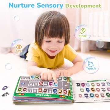 It includes a variety of activities like alphabet learning, color recognition, counting games, puzzles, and sensory activities.