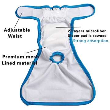 Show moreDiscover the practical solution to keep your home clean and your furry friend comfortable with the JoyDaog Female Dog Diapers. This premium pack includes four high-quality, washable diapers specifically designed for small dogs. Made from soft and durable materials, these diapers ensure not only safety but also complete comfort for your pet. They feature a snug yet gentle fit that prevents leaks and makes them perfect for dogs in heat, potty training, or those with incontinence issues. With a stylish and functional design, your dog will look adorable while staying protected.