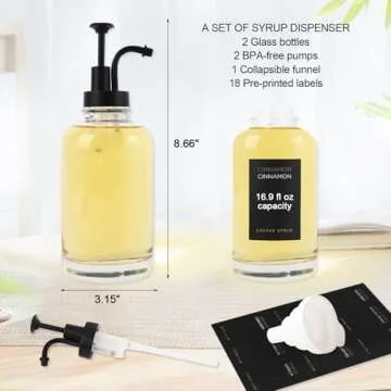 This set comes with everything you need to organize your coffee syrups stylishly. It includes two beautifully crafted 16 oz pump bottles complemented by chic black pumps that provide a smooth dispensing experience. Whether you're sharing with friends or indulging in a quiet morning brew, these dispensers will enhance the ritual.