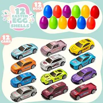 Show moreIntroducing the JOYIN 12 Pcs Die-Cast Car Filled Big Easter Eggs - the ultimate surprise for your little racers this Easter! Each of these vibrant, colorful eggs measures 3.2 inches and comes filled with a unique die-cast race car, making them an exciting addition to any Easter celebration. Crafted from high-quality materials, these eggs feature a thick shell that ensures durability and a secure closure, so the surprises inside remain safe until the big reveal. Not only are they a delightful treat for kids, but they also add an element of adventure to Easter egg hunts, keeping children engaged and excited as they discover different styles of die-cast cars hidden within each egg.