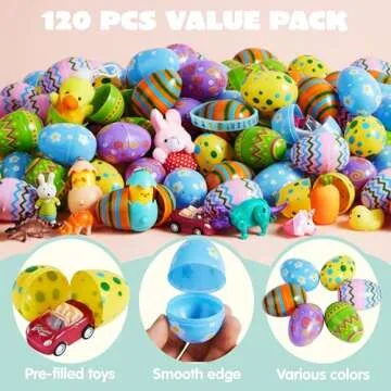JOYIN 120 Pcs Toys Plus Stickers Prefilled Easter Eggs for Easter Eggs Hunt, Basket Stuffers Fillers, Theme Party Favor, Classroom Prizes Decoration