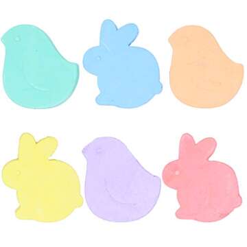 Show moreBrighten up your Easter celebrations with the JOYIN 18 Pack Easter Sidewalk Chalk Set, the ultimate accessory for your family’s outdoor fun! This delightful set includes 12 egg-shaped, 3 bunny-shaped, and 3 chicken-shaped chalks, featuring 6 vibrant spring colors: Red, Orange, Purple, Yellow, Green, and Blue. Each color is represented by 3 pieces, ensuring plenty of creative opportunities for kids aged 3-10 as they unleash their imaginations during Easter egg hunts and parties. Made from non-toxic materials, this chalk set is safe for young ones, allowing them to express their creativity without worry.