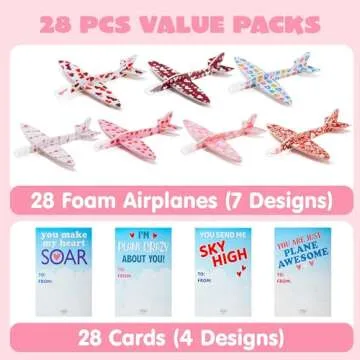 JOYIN 28 Pack Valentine's Day Greeting Cards with Foam Airplanes, Valentine Classroom Exchange, School Gift Exchange Game Prizes (Mixed)