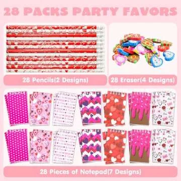 JOYIN 28 Packs Valentine Themed Notepad, Pencil and Eraser for Kids and Adults School, Party Favor Stationery Sets, Gift Set Classroom Exchange Toy