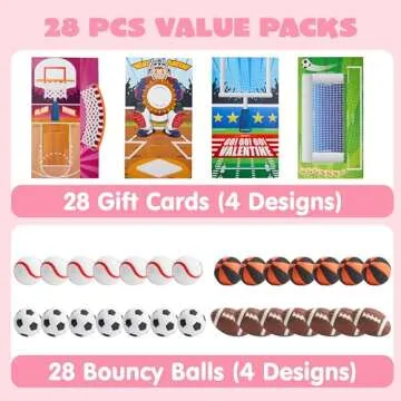 JOYIN 28 pcs Fun Valentine Sports Game Card and Erasers for Kids Party Favor, Classroom Exchange Prizes, Valentine’s Greeting Cards