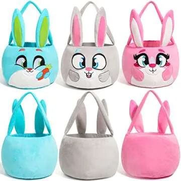 JOYIN 3 Pcs Plush Easter Bunny Basket with Cute Designs for Kids