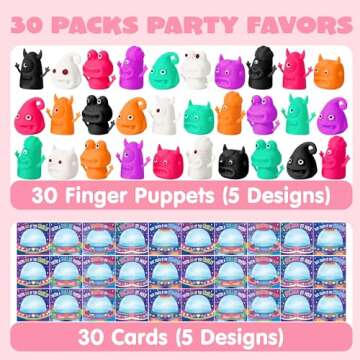 JOYIN 30 Packs Valentine's Day Finger Puppets with Cards, Classroom Exchange Gift for Kids, Valentine's Party Favors, Holiday Reward Prizes