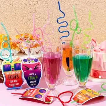 JOYIN 36 Pack Valentines Day Gift Cards with Colorful Loop Reusable Drinking Straws for Valentine Party Favors Toy,Kids Classroom Gift Exchange Prizes
