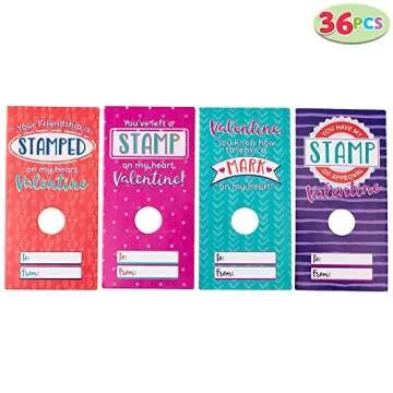 JOYIN 36 pack Valentines Day Gift Cards with Gift Valentine Stampers for Classroom Exchange Prizes Party Favor Toys