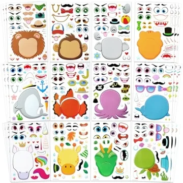 Designed to foster creativity and teamwork, this set encourages children to collaborate and engage with their peers as they bring their own imaginative faces to life. Whether for birthday parties, house gatherings, art classes, or group activities, these stickers enhance the joyful atmosphere of any occasion. Kids will have a blast peeling and sticking as they create unique animal characters, making it a fantastic choice for quiet activities or as delightful goodie bag fillers.