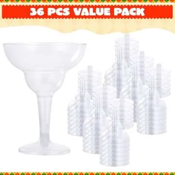 JOYIN 36 pcs Clear Plastic Martinni Glasses, 12 oz Disposable Plastic Margarita Cups, plastic champagne glass, cocktail Cup for Fiesta, Taco Night, and Mexican Themed Party Supplies