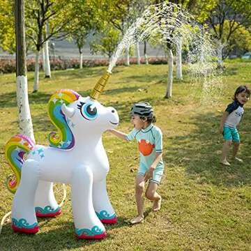 When compared to other inflatable garden toys on the market, the JOYIN 48'' Unicorn Sprinkler stands out for its unique design and robust quality. Many competitors offer similar products but at the cost of durability. The material used in this unicorn sprinkler is thicker and more resistant to wear and tear, ensuring it can handle hours of fun without deflating or getting damaged. Unlike others that may require constant refilling or are prone to punctures, this top-quality option promises longevity, allowing you to enjoy summer after summer of water play.