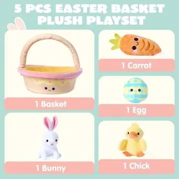 JOYIN 5 Pcs Easter Basket Plush Playset: Bunny, Chick, Egg, Carrot