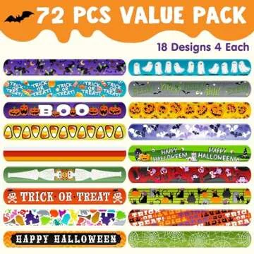 Get ready to elevate your Halloween festivities with the JOYIN 72 PCS Halloween Slap Bracelets! This incredible value pack includes 72 pieces adorned with 18 unique Halloween patterns, including thrilling designs like ghosts, pumpkins, witches, bats, mummies, vampires, and black cats. Perfect for kids and adults alike, these vibrant slap bracelets are not only a great accessory but also a fun way to spread the Halloween spirit at parties, classrooms, or during trick-or-treating adventures....