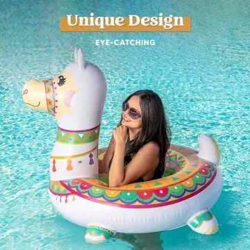 Show more Get ready for fun in the sun with our adorable llama inflatable pool tube, designed to add a splash of joy to any summer gathering. This vibrant float, measuring an impressive 43.5 inches in diameter, is perfect for children and adults alike, making it an excellent addition to your poolside adventures or beach getaways. The charming llama design features four cute feet, ensuring that it stands out in any aquatic setting. Its unique mermaid tail adds an extra whimsical touch, bringing colorful playfulness to your seasonal merriment.