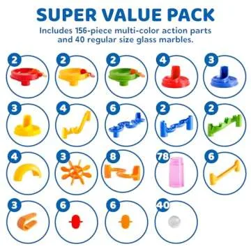 Show moreIntroducing the JOYIN Marble Run Premium Set, a thrilling adventure in learning with 196 pieces designed to captivate and educate young minds! This exquisite marble run set combines 156 translucent plastic pieces and 40 small glass marbles, presenting an exciting challenge as children construct intricate tracks for marbles to race down. The vibrant colors and transparent materials not only make for a visually stunning play experience but also encourage children to explore the principles of motion and physics in a hands-on manner.