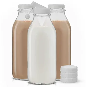Show more Introducing the JoyJolt Glass Milk Bottles with Lids and Pourer – a stunning blend of nostalgia and modern functionality! These versatile 32 Oz bottles are perfect for not just milk but a splendid array of beverages, making life that much easier. With their vintage charm, this set of three elevates your kitchen aesthetic while providing practical solutions for beverage storage. Each bottle is designed with a spout for easy pouring, enabling a mess-free experience whether you're serving milk, juice, or iced tea.