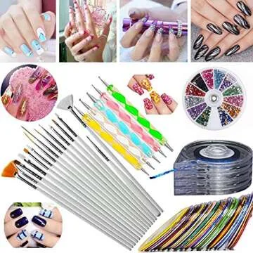 Each component in the kit is made with quality craftsmanship, ensuring they perform exceptionally well during your nail art sessions. The striping tapes are highly adhesive and come in vibrant hues, enhancing your designs effortlessly. The rhinestones offer a sparkle that adds a touch of glam, while the dotting pens ensure precision and control, enabling intricate designs that stand out. The brushes, featuring soft bristles, allow for smooth application and detailing, promising that your creations will always look professional and polished.