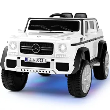 Show more Experience the thrill of driving with the JOYLDIAS Kids Ride On Car, an officially licensed Mercedes-Benz Maybach G650S that brings luxury and adventure to playtime. Designed with the little ones in mind, this toy electric car is not just a ride; it’s a complete driving experience. With its realistic design, complete with opening doors and a trunk, your child will feel like a true VIP. The addition of interactive sound effects and vibrant LED lights makes every journey exciting, whether they're cruising around the yard or enjoying a ride in the park.