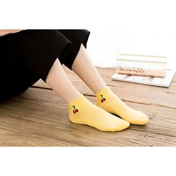 Joylife Fruit Embroidered Ankle Socks Cute Low Cut Socks for Women, Ladies, Girls, 10 Pack