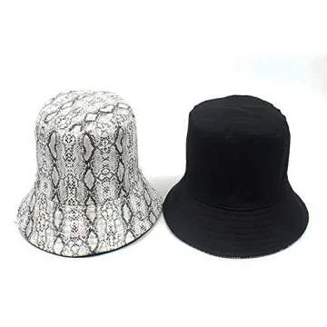 Joylife Snakeskin Print Bucket Hat Trendy PU Fisherman Hats Unisex Reversible Packable Cap