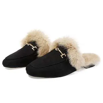 Show moreStep into elegance and comfort with the JOYMARS Women's Soft Slip-on Loafer Slides. Featuring a versatile velvet exterior and luxurious faux fur lining, these backless mules are the ultimate blend of style and practicality. Whether you're dressing up for casual outings or simply lounging at home, their chic design enhances any ensemble while providing all-day comfort. Perfect for both indoor and outdoor wear, the rubber sole ensures durability while providing a non-slip experience. Plus, the stylish black color makes these mules a staple in your wardrobe.