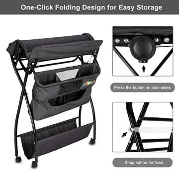 JOYMOR 2-in-1 Folding Baby Changing Table, Moblie Diaper Table for Infant, Portable Diaper Changing Station with Wheels, Large Storage Basket & Shelf Portable Nursery Organizer