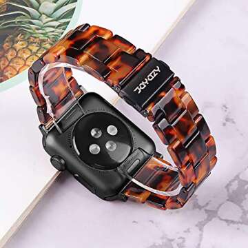 JOYOZY Fashion Resin Band with Bling Case Compatible with Apple Watch 38mm, Stainless Steel Buckle iWatch Band Bracelet for Apple Watch Series 6 Series SE Series 5 4 3 2 1 Women(Tortoise, 38mm)