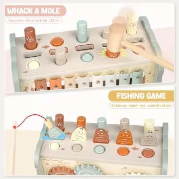 Joyreal Wooden Montessori Toys for 1 Year Old - Whack A Mole Hammering Pounding Toy with Xylophone & Fishing Game - Educational Toddler Activities for 1 2 3 Year Old Christmas Birthday Gifts