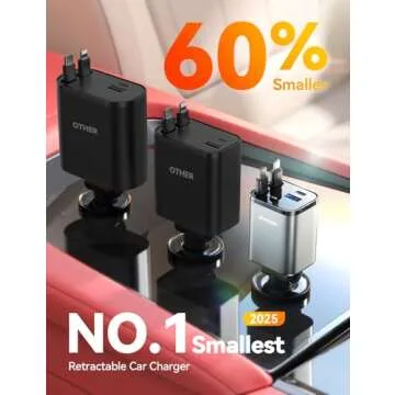 Show more Introducing the innovative JOYROOM 2025 New Upgrade Smallest 4 in 1 Retractable Car Charger, the perfect solution for anyone seeking a compact and efficient charging option on the go. Measuring just 5.11 x 1.77 x 1.49 inches, this car charger is designed to fit seamlessly into your car's cigarette lighter, eliminating the hassle of bulky chargers that obstruct your driving. Its 180° rotation feature allows you to position it perfectly, ensuring easy access and stability even on the bumpiest of roads.