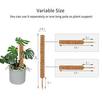 JOYSEUS 30 Inch Moss Pole for Climbing Plants - 2 Pack 15 Inch Coir Totem Pole Plant Support with 65 Feet Garden Twist Tie for Monstera and Potted Plants to Grow Upwards…