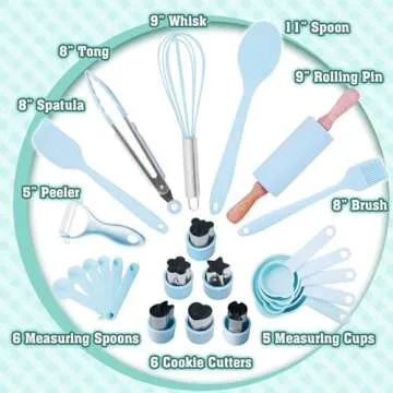 Show more Introducing the 33PCS Complete Kids Cooking Set in a delightful light blue hue, designed to ignite the passion for cooking in young aspiring chefs. This vibrant set isn't just a collection of utensils; it's a comprehensive kit tailored for children, featuring real cooking tools that will have them whipping up delightful dishes under adult supervision. With items like an 11” spoon, 9” whisk, 9” rolling pin, and more, this set provides everything your little chef needs to embark on culinary adventures.