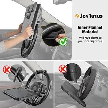 Show moreIntroducing the JoyTutus 3 in 1 Steering Wheel Eating Tray, a revolutionary accessory that transforms your car into a multifunctional space for dining, working, and organizing. Designed for busy parents and professionals, this versatile product is not just an ordinary tray; it’s a mobile workstation, eating table, and clever organizer all rolled into one. Featuring a new and innovative flannel pocket that fits most vehicles, it guarantees no scratches on your steering wheel, making it a stylish addition to any car interior.