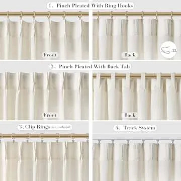 Joywell Linen Pinch Pleated Window Curtains 90 Inch Long,Back Tab Clip Rings Semi Sheer Light Filtering Drapes with Hooks for Bedroom Living Room Decor,W50 x L90,Natural Beige,2 Panels