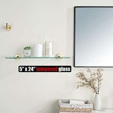 JQK Bathroom Glass Shelf - Elegant Gold Tempered Glass Storage Solution 24x5 Inches