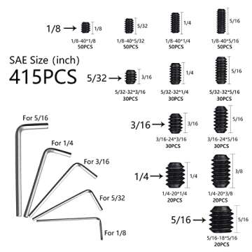 JROUTH 1000pcs Metric + SAE Set Screw Assortment Kit, Internal Hex Drive Cup-Point Allen Screws Set 12.9 Class Alloy Steel Grub Screw (M3-M8, 1/8"-40 to 5/16"-18)