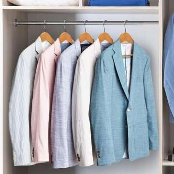 Show more Introduce sophistication into your closet with the JS HANGER Wooden Coat Hangers, a premium set of 20 high-grade wood hangers meticulously crafted from 100% solid hardwood. Each hanger features a stunning walnut finish, expertly accentuating the beautiful grain of the wood. Not only does this luxurious design elevate the aesthetic of your wardrobe, but it also provides the durability and strength needed for even the heaviest garments. The versatility of the color allows these hangers to seamlessly blend into any home environment, making them not just functional, but also a stylish addition to your storage.