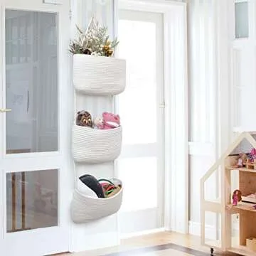 Show moreTransform your storage solutions with the JS HOME Cotton Over Door Hanging Basket, a beautifully crafted 3-tier wall mount organizer designed for both functionality and style. Made from natural cotton, this eco-friendly organizer is handwoven by skilled artisans, ensuring no unpleasant odors or toxic chemicals permeate your space. The unique craftsmanship not only enhances its aesthetic but also increases durability, allowing for greater load-bearing capabilities compared to traditional fabric hanging baskets. With dimensions of 7" depth and 14.7" width, this decor piece seamlessly blends practicality with elegance, making it a perfect addition to any room in your home.
