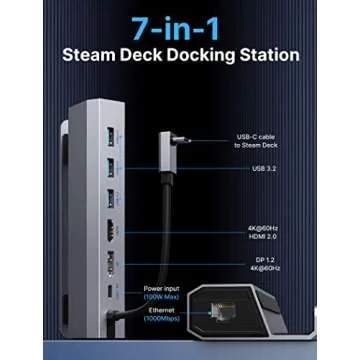 JSAUX Docking Station for Steam Deck/Rog Ally/Legion Go, 7-in-1 Steam Deck Dock with HDMI 4K@60Hz, DisplayPort, Gigabit Ethernet, USB-A 3.2 and 100W Charge Compatible with Steam Deck OLED-HB0702